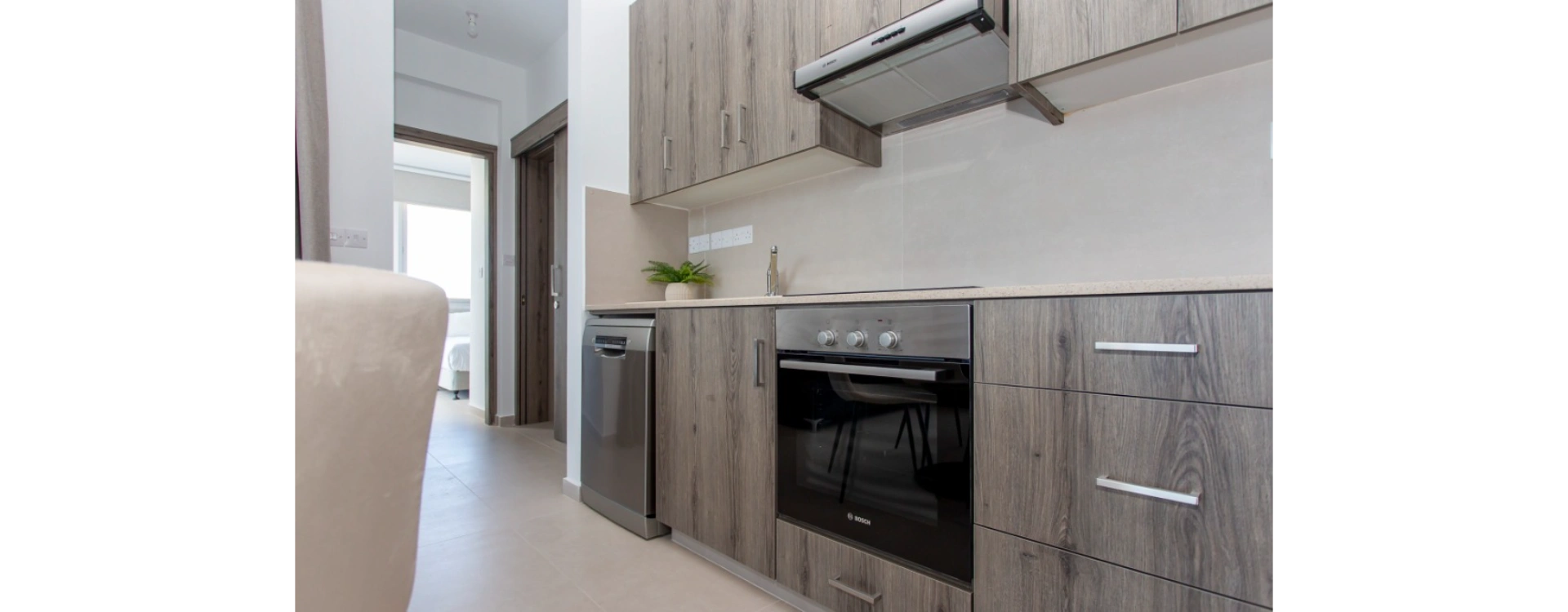 The fully equipped kitchen includes all white goods, along with a dishwasher and oven, making everyday living easy and practical