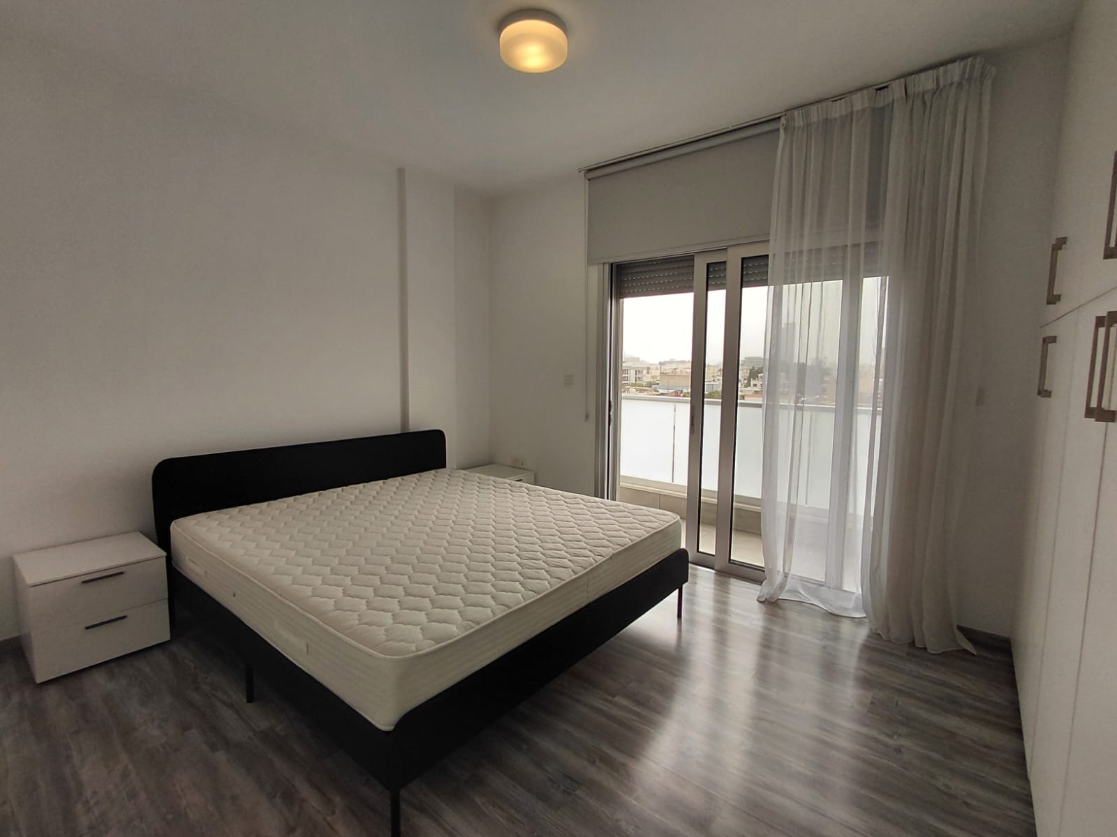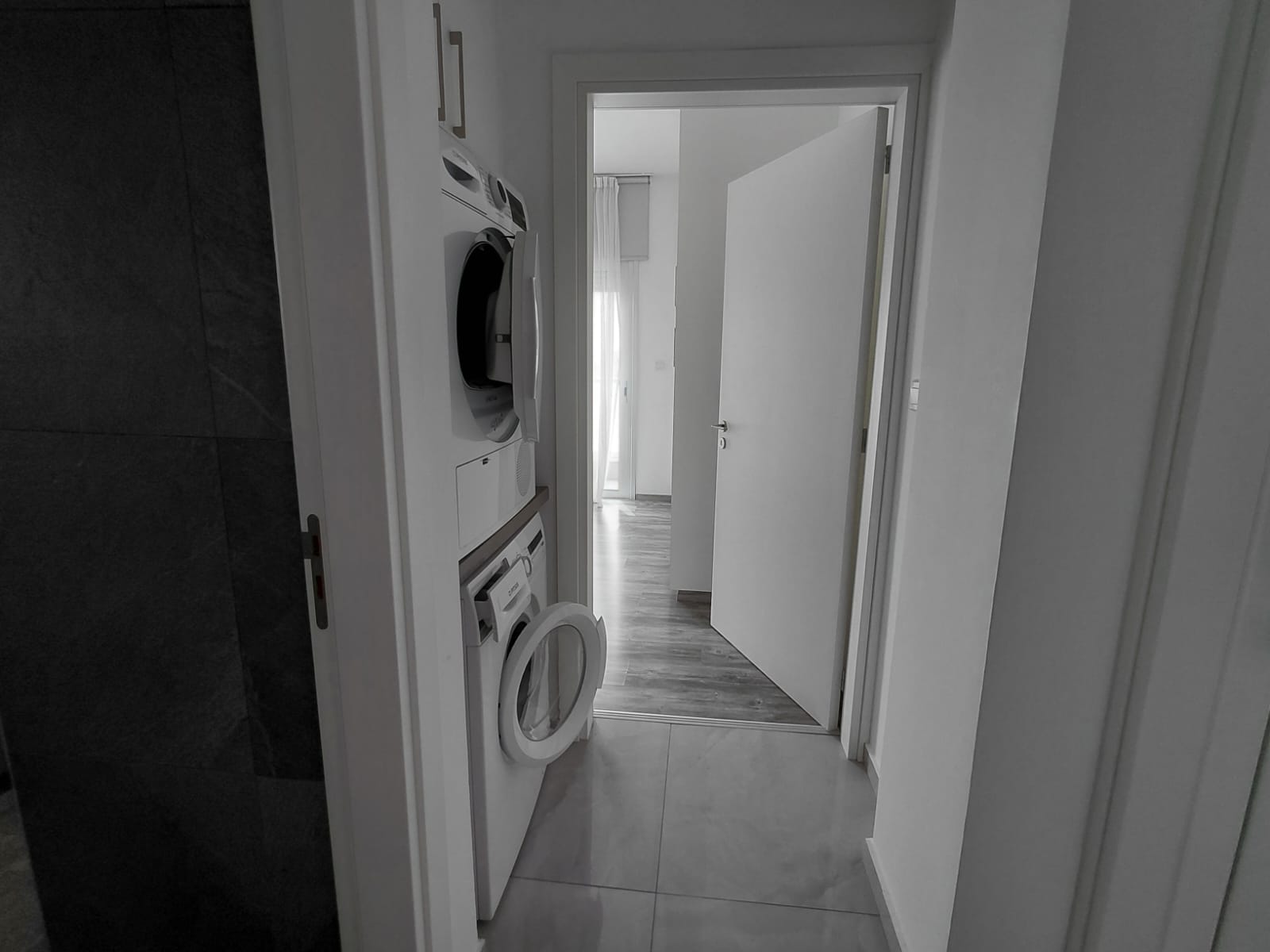 The apartment’s two bedrooms are cozy and well-designed, with one offering direct access to the balcony, adding an extra touch of outdoor connection. The sleek, modern bathroom and dedicated laundry area streamline your daily routine, making life effortlessly and convenient.