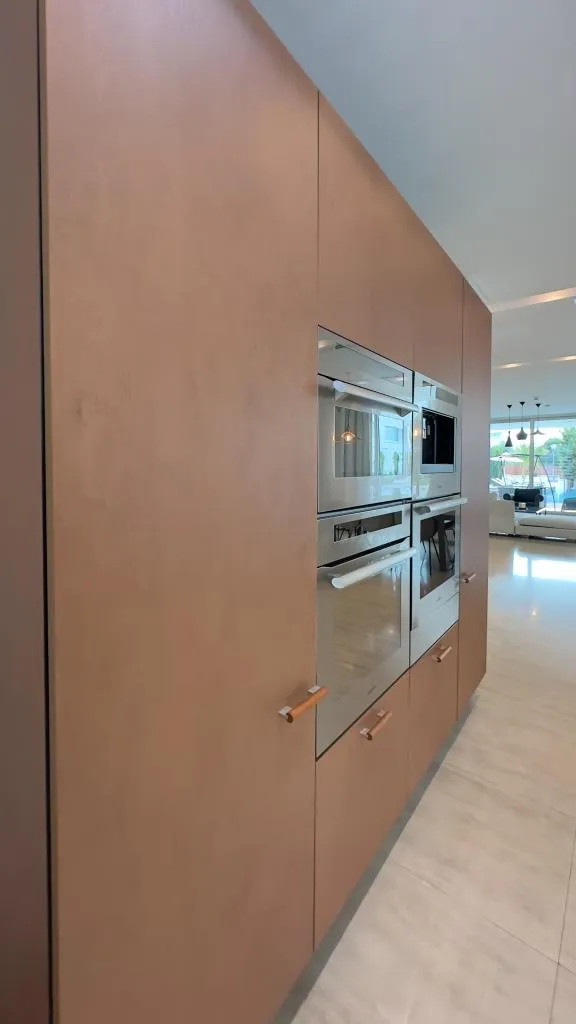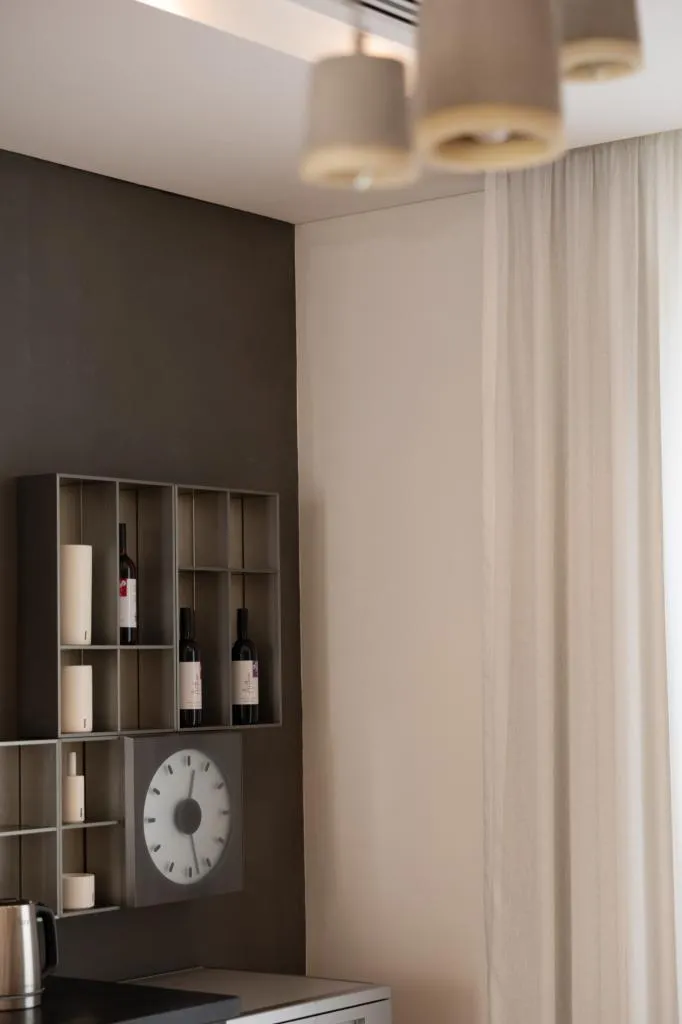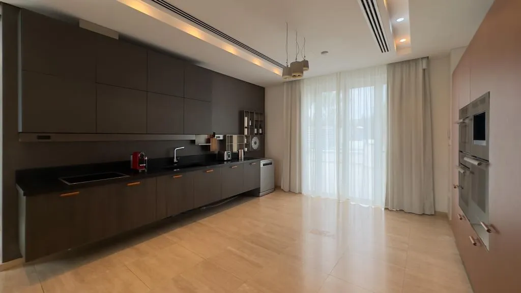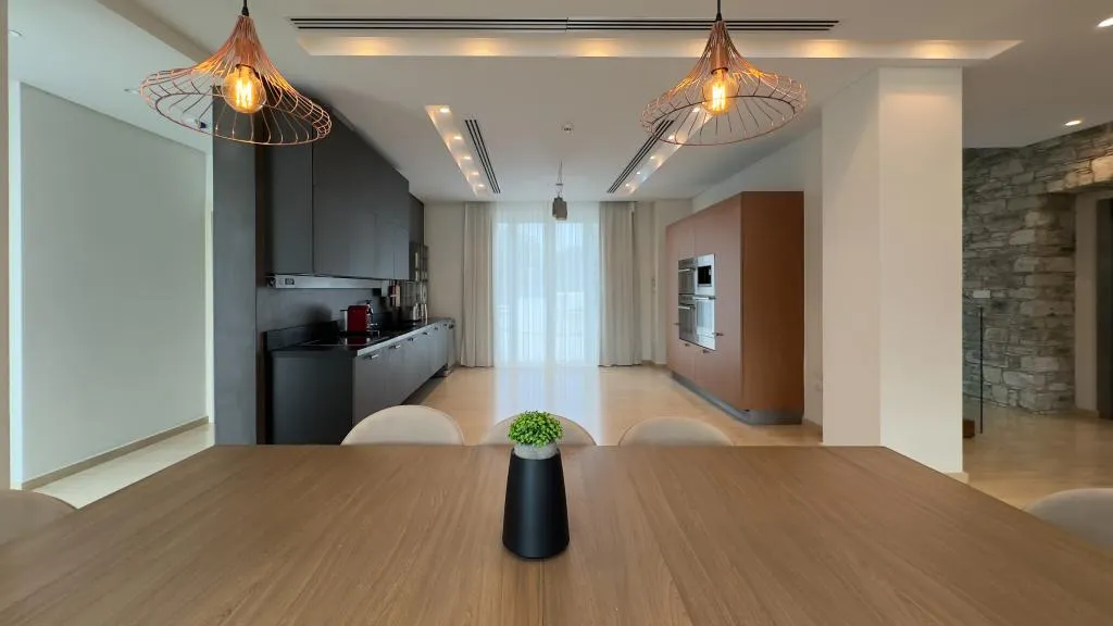 Located in the second row of properties along the seafront, this stunning villa has it all. The villa’s interior is as visually impressive as it is warmly inviting. Wood, parquet, stone and glass features are in harmony with earthy colours and beautiful patterns. Top quality household appliances leave nothing to be desired – Nespresso coffee machine and a wine fridge are also provided.